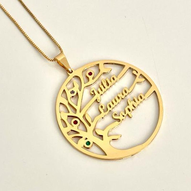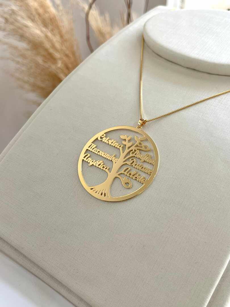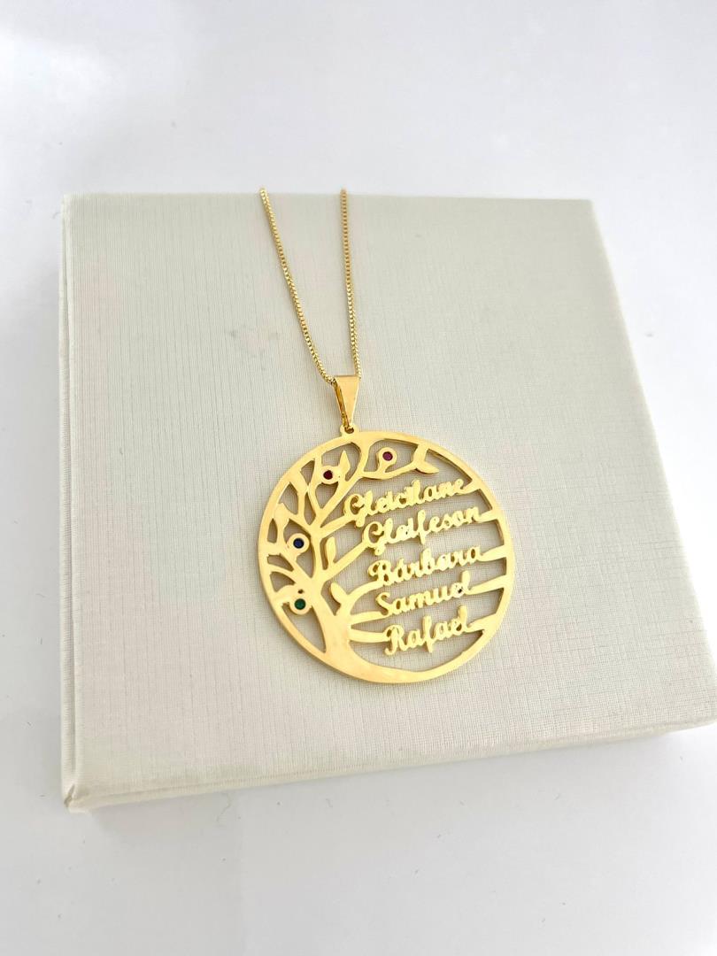 - Colar Árvore 5 com os Nomes Gravados com zircônias cravejados Personalizado