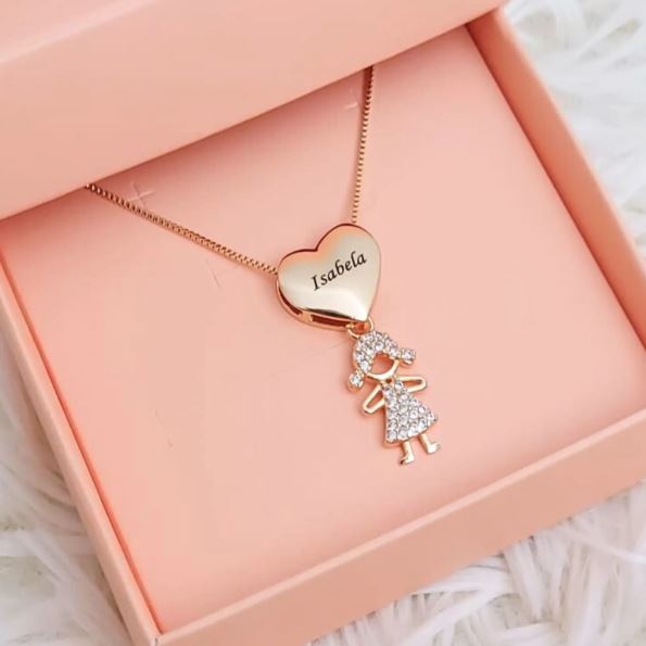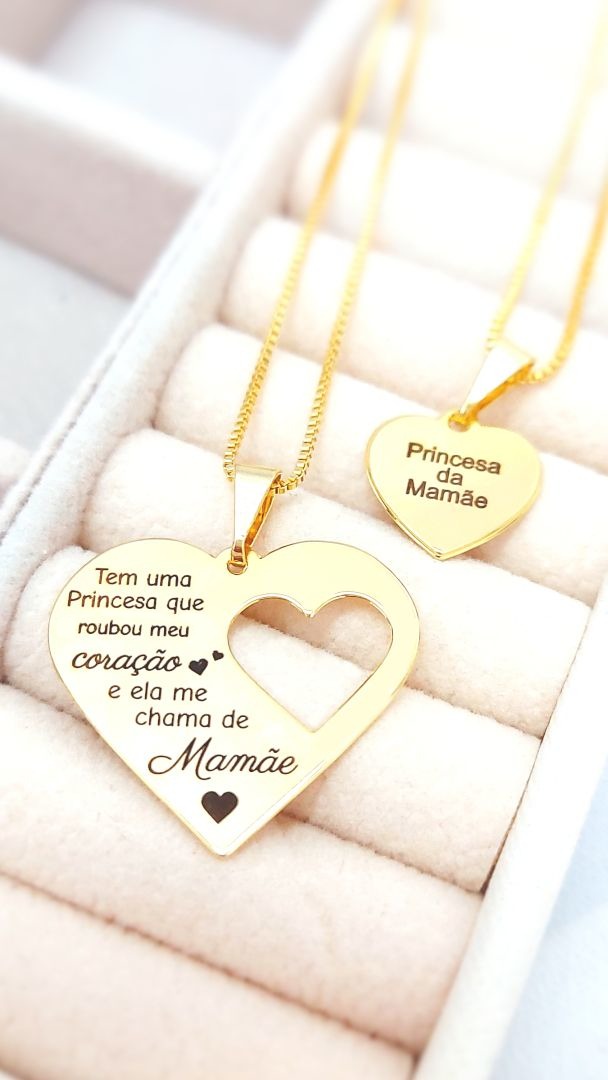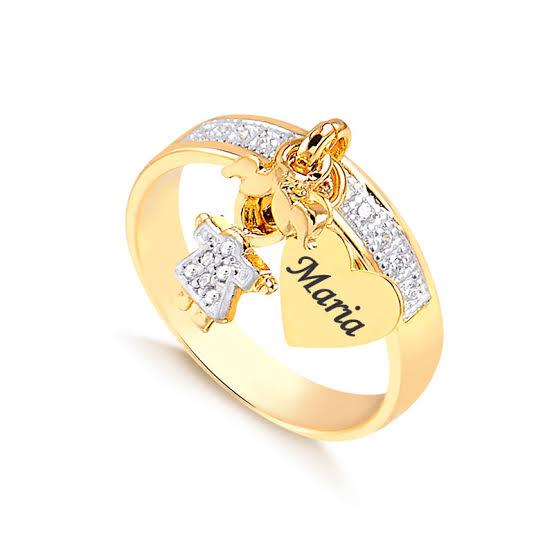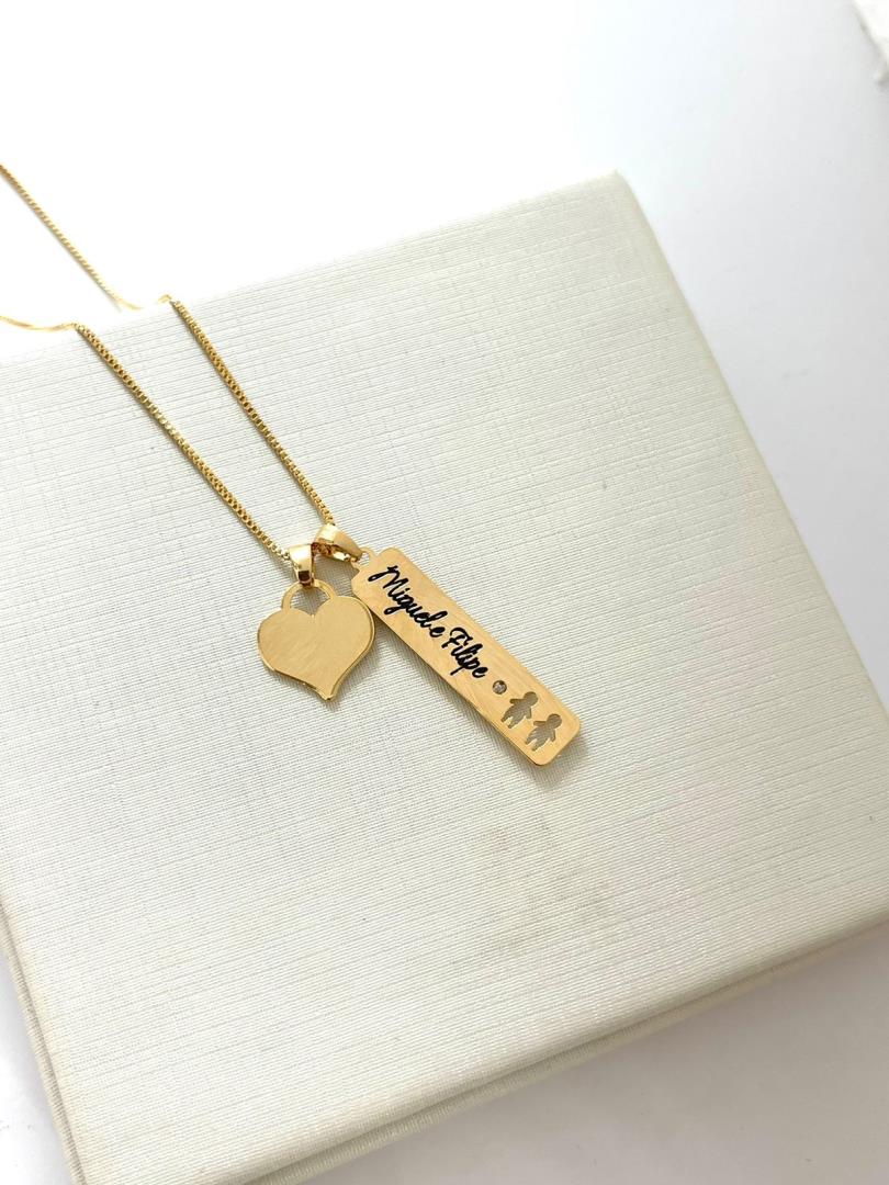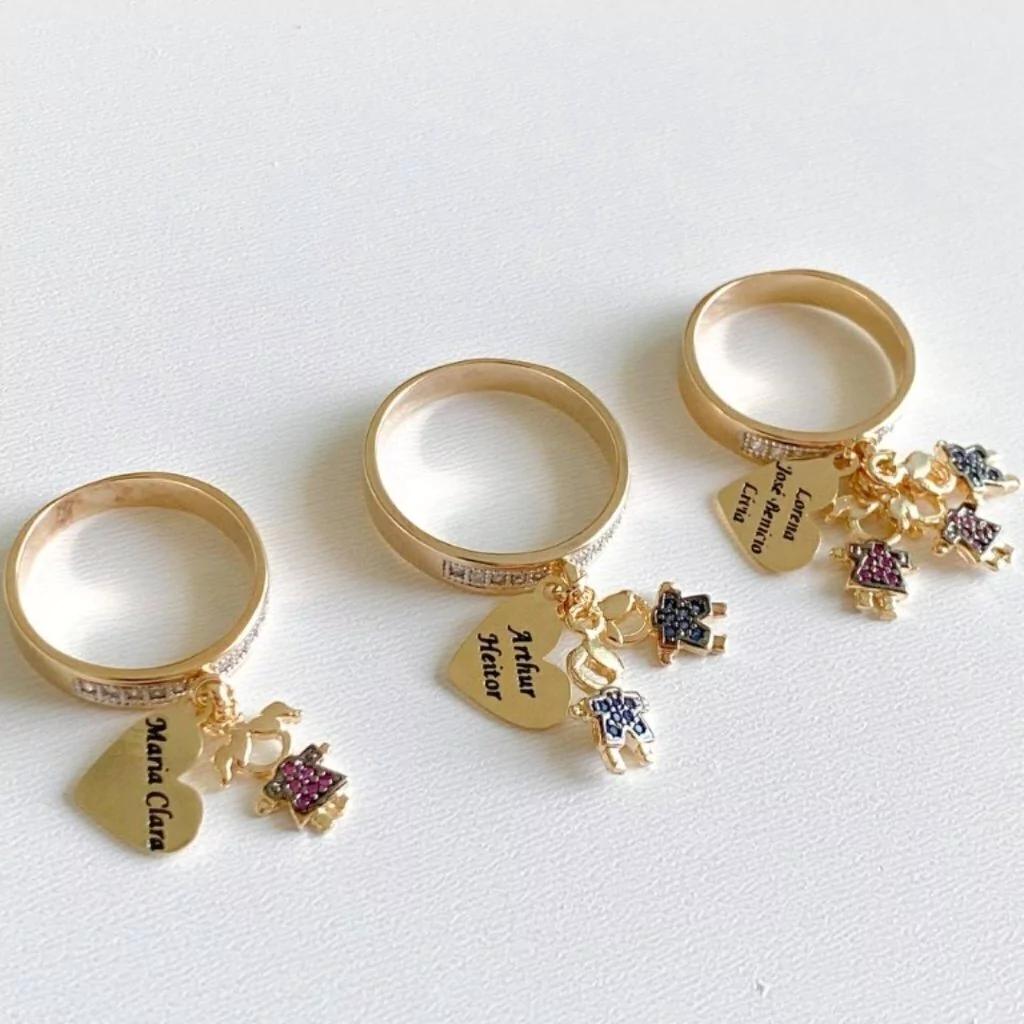 - Anel Pingente Filho e coração com Gravação Personalizado
