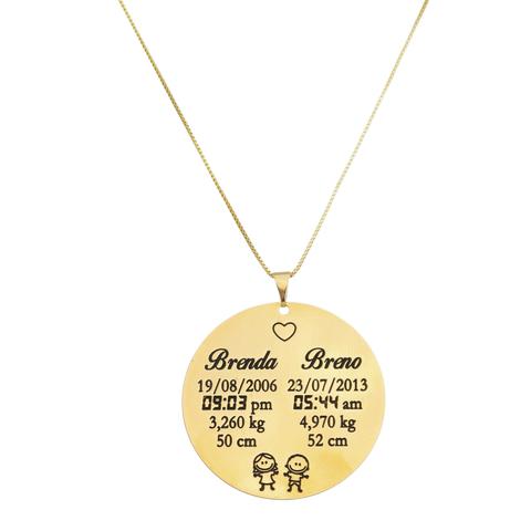 - Colar Medalha Personalizado Banhado a Ouro 18K medalha de 1,5cm de diâmetro