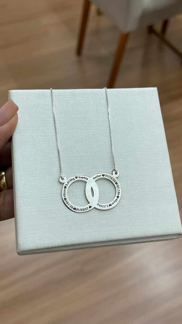 - Colar Elos Entrelaçados Prata 925 Personalizado, gravação nome dos filhos