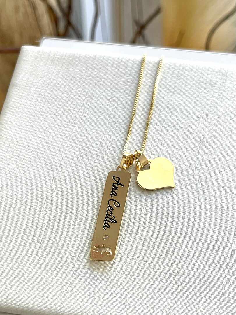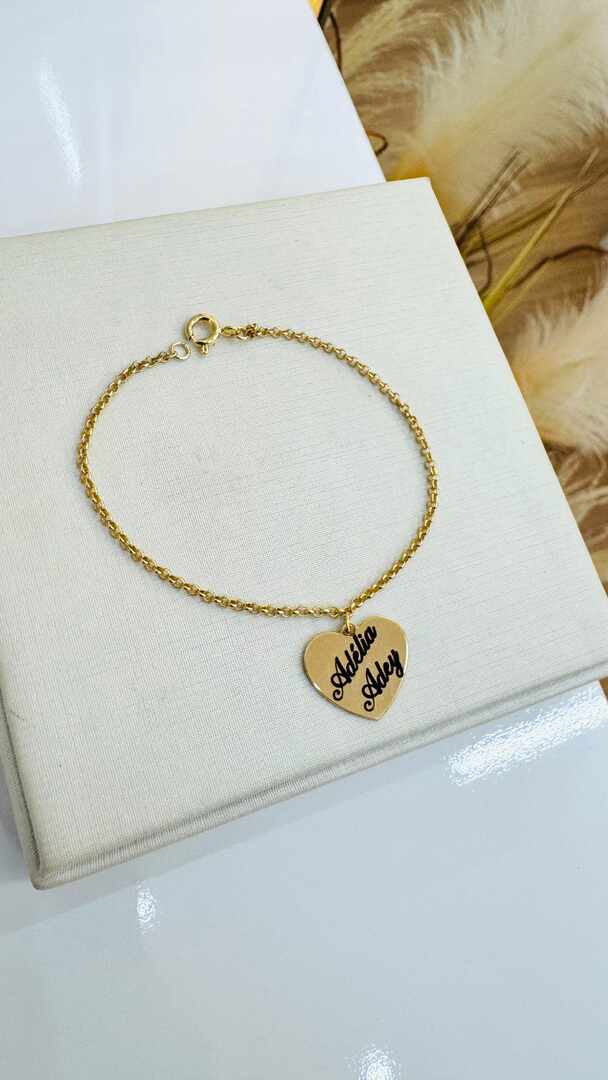 - Pulseira Pingente Coração Personalizada Banhada a Ouro 18K