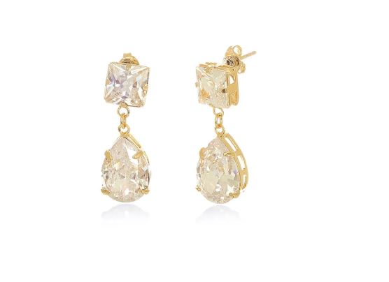 - Brinco Pingente Ponto de Luz gota Banhado a Ouro