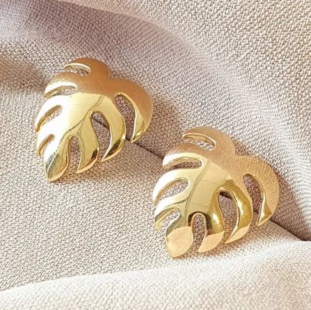 Brinco Folha Palmeira Banhado a Ouro 18K